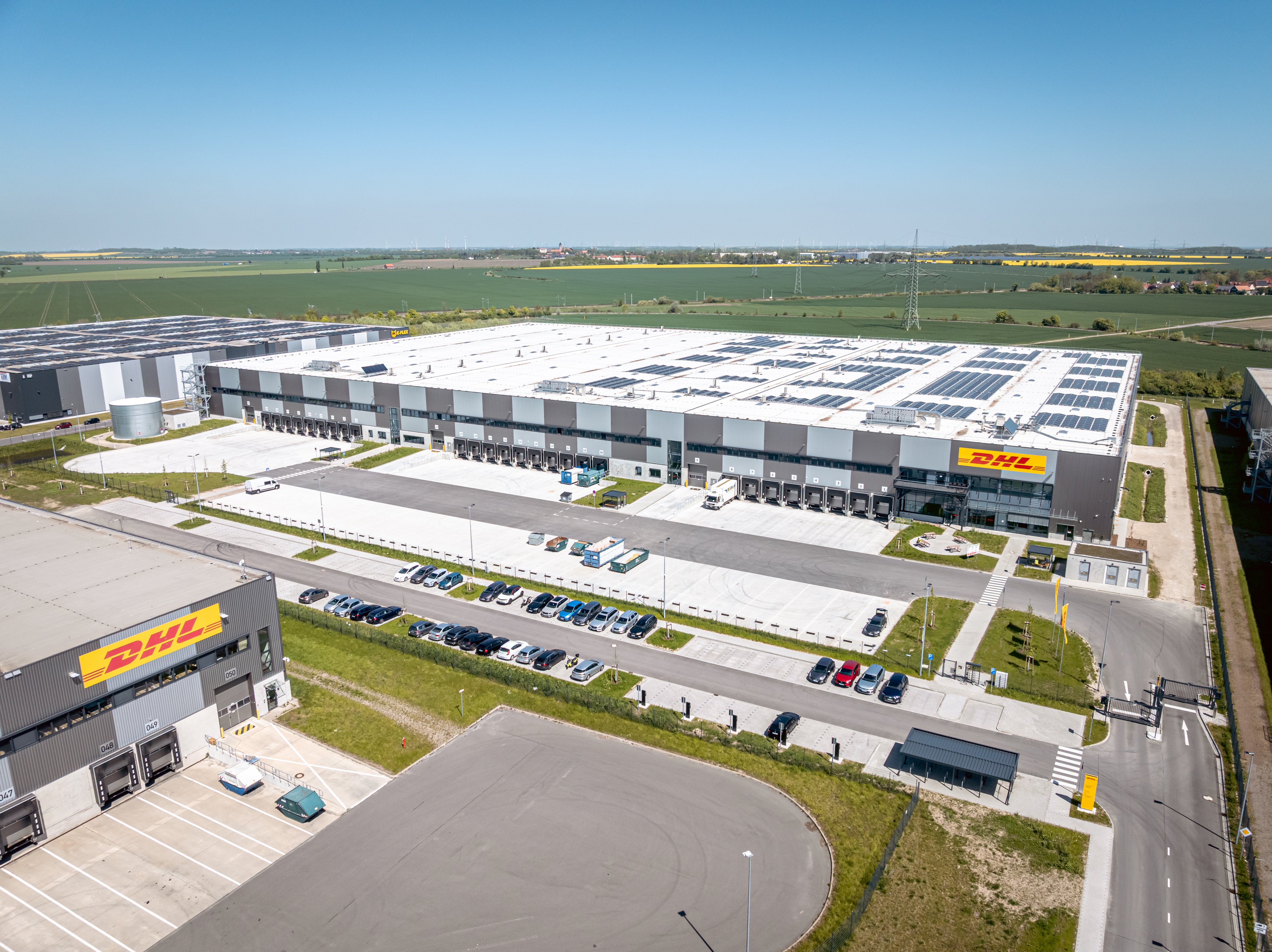 The Halle logistics center includes three operational halls, each spanning 10,500 square meters, and is equipped with 27 loading docks. Built to meet the highest sustainability standards (DGNB Gold), the site features photovoltaic systems and energy-efficient LED lighting, reflecting DHL's goals to support customers with emission reduced logistics services. The site currently employs more than 450 people, with an additional 100 jobs to be created once the extension building is fully utilized.